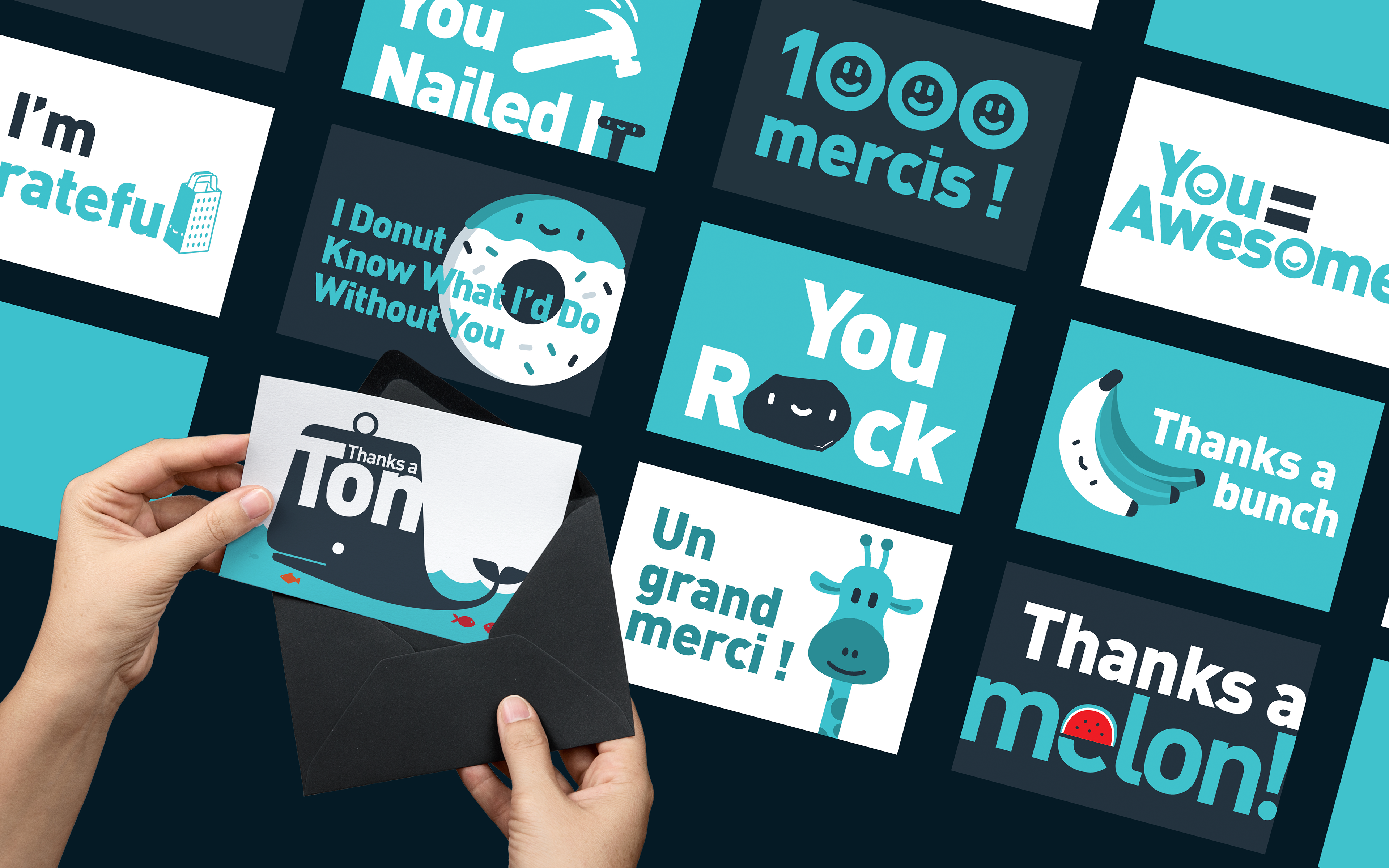 Diverses cartes de remerciement pour les employés du Groupe TMX. — Various Thank You cards for TMX Group employees.